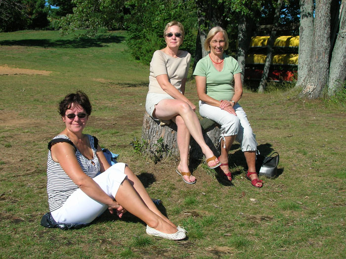 Nareszcie trochę słonca!na ziemi siedzi Jadwiga Święcicka; na pniu - Barbara Woźniak i Danuta Senkowska